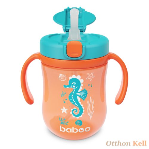 BABOO® Súlyozott szívószálas itatópohár (szilikon szívószállal), 300 ml, Sea Life, narancssárga, 9+ hónapos kortól