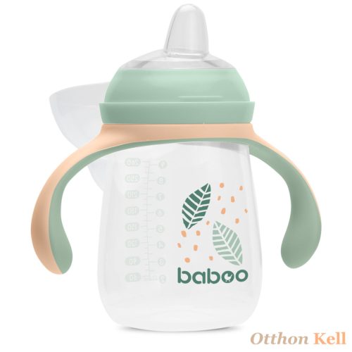 BABOO® Csöpögésmentes itatópohár szilikon ivócsőrrel, 260 ml, Peachy Keen, zöld színű, 6+ hónapos kortól